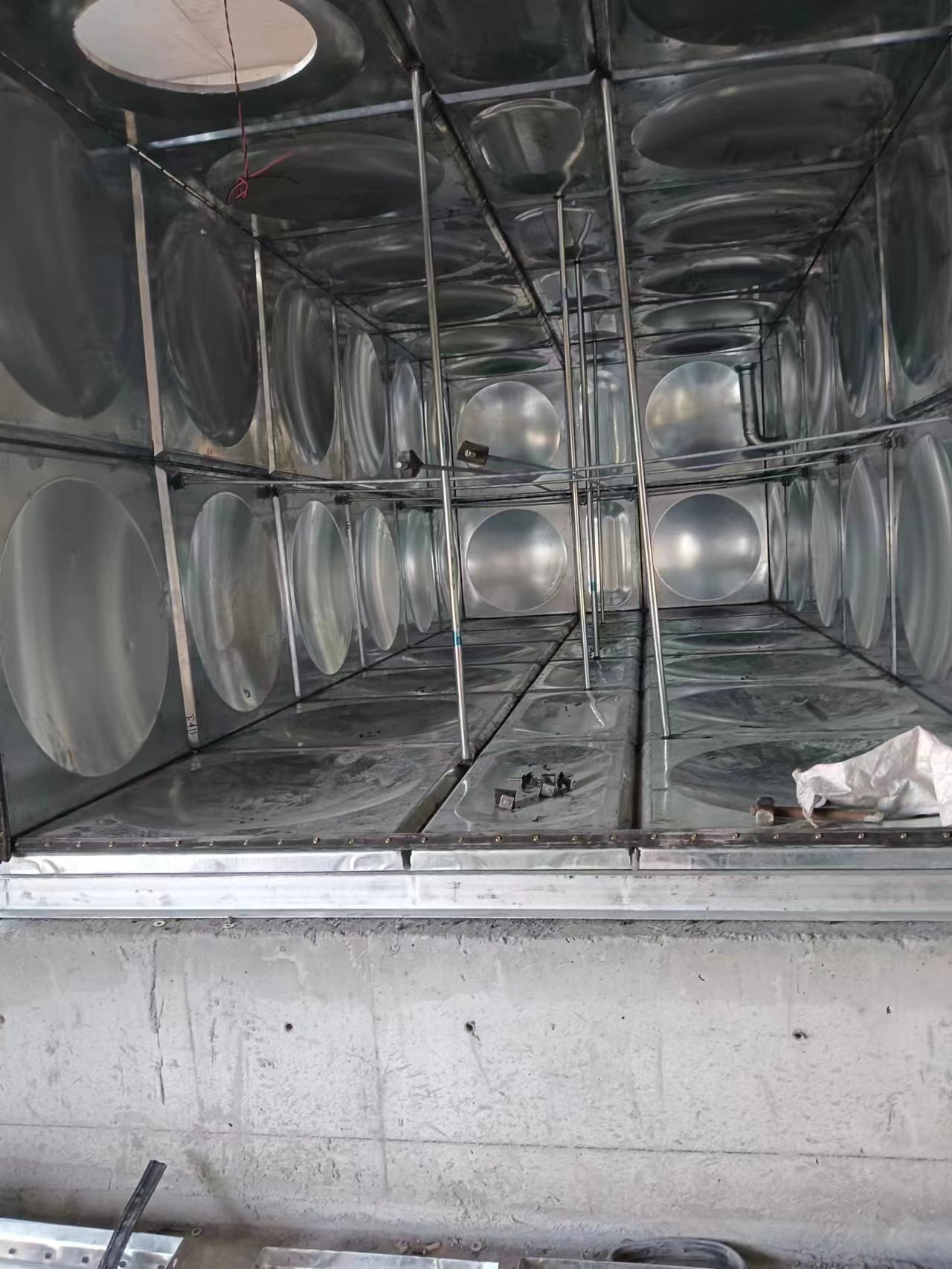我司承接的山東淄博福源泰有限公司年產20萬方新型高回彈聚氨酯新材料及智慧型寢具技改項目30立方鍍鋅鋼板保溫水箱已經安裝試水完成。水箱位于室內,采用的是5公分橡塑鋁箔布保溫。