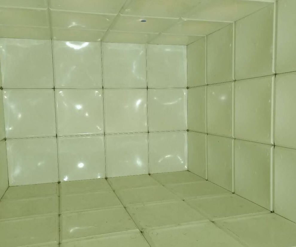 玻璃鋼水箱由整體優(yōu)質(zhì)的SMC水箱板拼裝而成。廣泛適用于工礦、企事業(yè)單位、住宅、賓館、飯店等建筑,作為生活飲用水、中水處理、消防用水及其他用水儲(chǔ)水設(shè)施。由于使用環(huán)境及使用介質(zhì)所限,有些水箱內(nèi)部盛有高濃度溶液,如:濃鹽水、海水等,對水箱內(nèi)壁鋼板會(huì)有嚴(yán)重腐蝕,因此無法采用不銹鋼水箱或者鋼板水箱。正常玻璃鋼水箱板可以耐腐蝕,但是水箱內(nèi)部又設(shè)有鋼制拉筋支撐等,故此也不適用以上介質(zhì)使用。為了滿足特殊用戶的使用需求,經(jīng)過承重及承壓測試后,這種無內(nèi)件玻璃鋼水箱面世,它采用不同規(guī)格(1000*1000mm、1000*500mm、500*500mm)的玻璃鋼模壓板組裝,水箱內(nèi)部不設(shè)有任何鋼制配件,水箱外部及底部采用工字鋼加固,所有法蘭采用ABS材質(zhì)俗稱塑料材質(zhì),外觀整潔無變形,內(nèi)部無配件,易清洗、維護(hù)方便,延長了水箱的使用壽命,滿足特殊用戶的特殊需求。