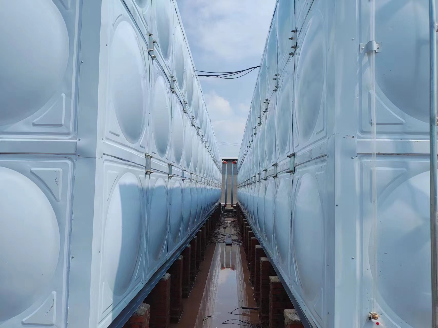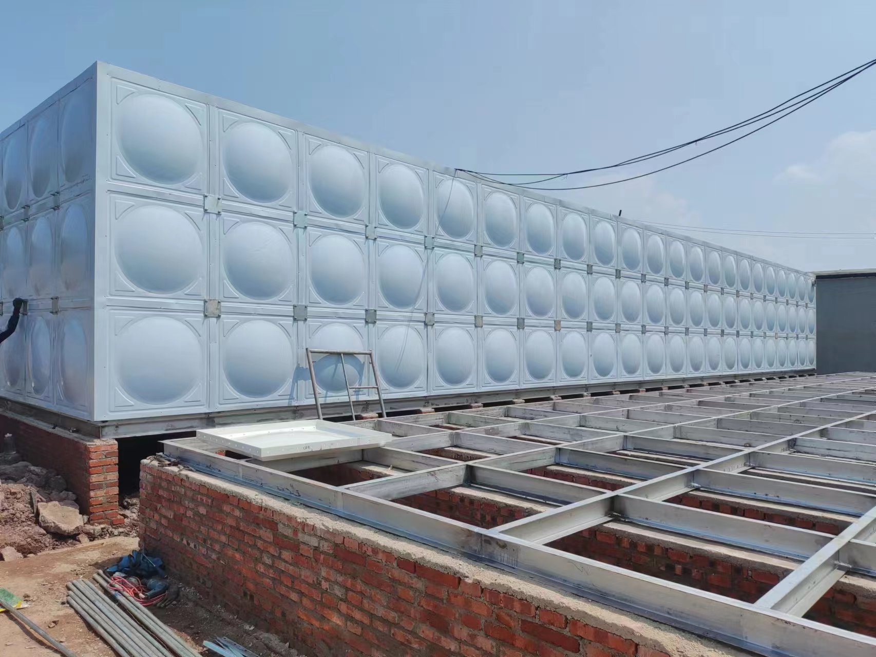 我司承接的山東省煙臺市棲霞市新好牧農(nóng)場項目,玻璃鋼保溫水箱已經(jīng)安裝試水完成。玻璃鋼保溫水箱是由SMC模壓板塊、密封材料、金屬結(jié)構(gòu)件及配管系統(tǒng)現(xiàn)場組裝而成。可根據(jù)用戶需要靈活組裝,若原有水箱需要更換,不需要改造房屋,適應性很強。水箱整體強度高,無滲漏,無變行,保養(yǎng),檢修方便。