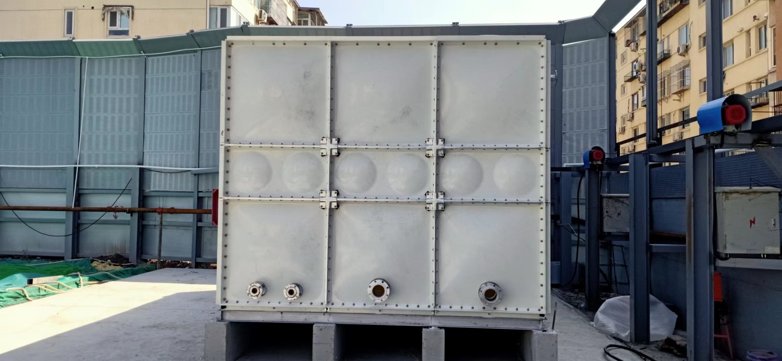 我司承接的北京市西城區(qū)半步橋街13號項目45立方玻璃鋼水箱已經(jīng)安裝試水完畢。SMC玻璃鋼水箱:廣泛地適用于工礦、企事業(yè)單位、住宅、賓館、飯店等建筑,作為生活飲用水、消防用水及對水質要求較高的食品、醫(yī)藥、衛(wèi)生等儲水設施。 四、安裝調試 水箱基礎可采用混凝土條形梁,或工字鋼。水箱頂部對角設有透氣空氣過濾裝置,規(guī)格和數(shù)量根據(jù)進口尺寸大小由生產(chǎn)廠家確定裝置。水箱內(nèi)部均使用拉筋。各管口法蘭均為1.0MPa標準法蘭。設計人員在布置水箱位置時,應參照二次供水設施衛(wèi)生規(guī)范。水箱規(guī)格技術參數(shù)或方位與實際使用不適合時,由設計人員按實際需要提出確定。 水箱滿水實驗,24小時無滲漏現(xiàn)象;管道連接處、閥門及相關附件有無滲漏水現(xiàn)象;觀察供水系統(tǒng)運轉情況是否正常;檢查水質消毒系統(tǒng)是否工作正常。