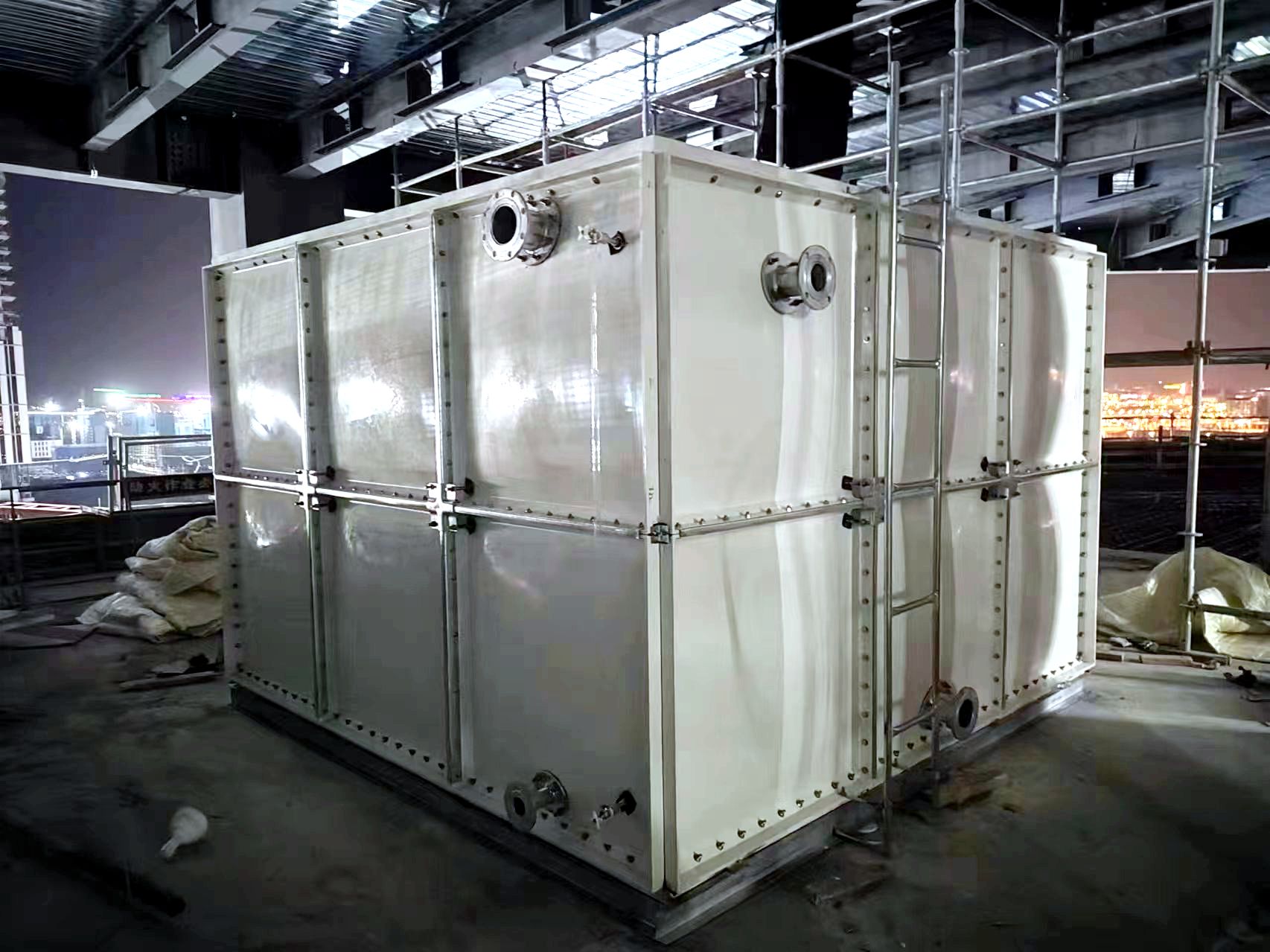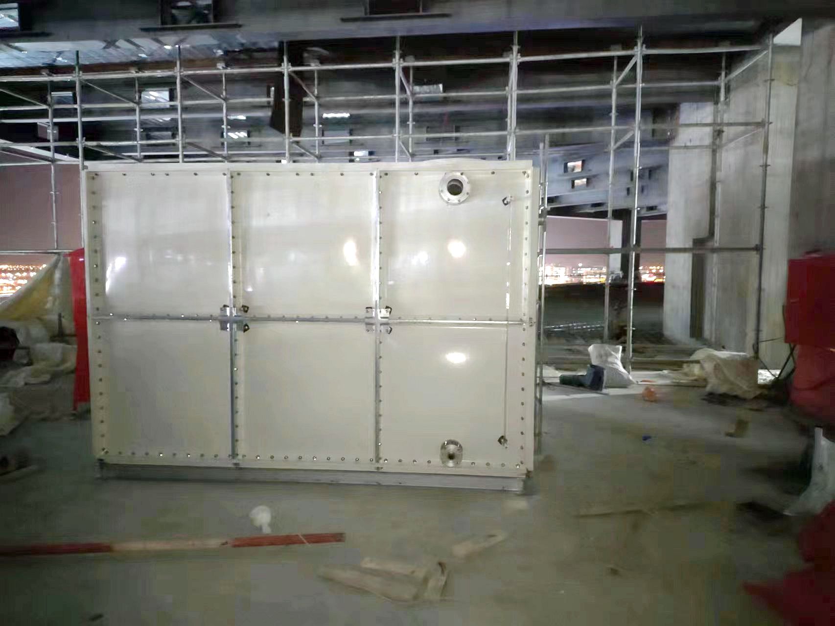 我司承接的河北省保定市雄安新區(qū)中化集團(tuán)現(xiàn)代化辦公樓消防臨時水箱項目,已安裝試水完畢。玻璃鋼水箱整體由好的SMC水箱板拼裝而成,造價低。其特點(diǎn)是采用樹脂,因此水質(zhì)好,清潔;具有強(qiáng)度高,重量輕,耐腐蝕,外型美觀,使用壽命長,保養(yǎng)管理方便等特點(diǎn)。
